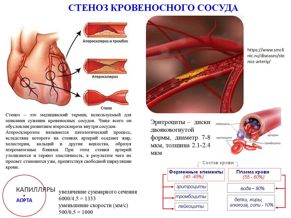 Обнаружены различия скоростей и структуры течения цельной и разбавленной крови. Скорости эритроцитов на оси симметрии модели: в цельной крови после сужения несколько ниже, чем перед ним, в разбавленной наоборот – существенно выше. Скопление параллельных друг другу эритроцитов перпендикулярно линиям тока, после прохождения цельной кровью стеноза, позволяет предположить, что процесс тромбообразования более вероятен в области кровеносного сосуда не до, а после сужения. Знание особенностей течения в микроканалах со стенозом позволят заложить основу для разработки новой методики диагностики и лечения сосудистых заболеваний.